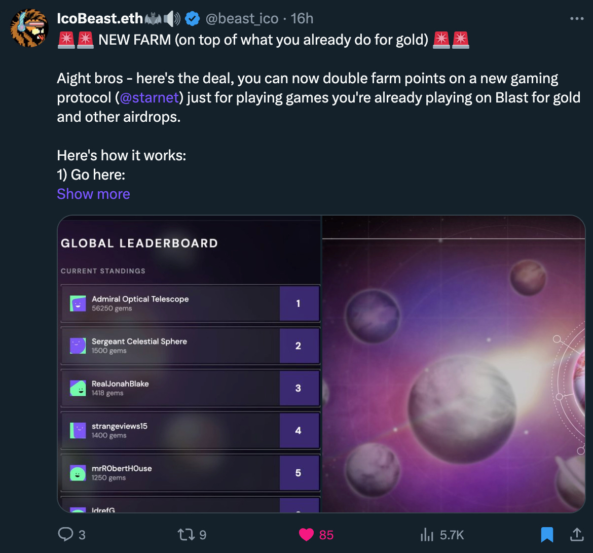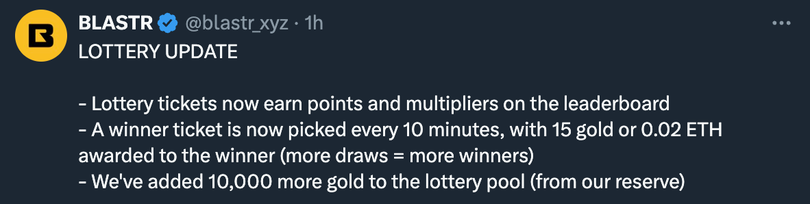 Earn Blast Points, Gold, and ETH/GOLD in draws every 10 minutes.
