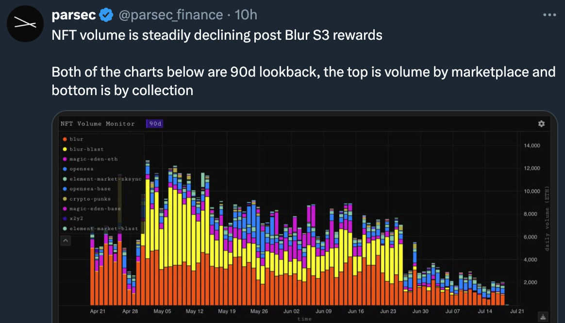 1. Parsec Finance: Blur's volume nosedives post Blur S3 rewards