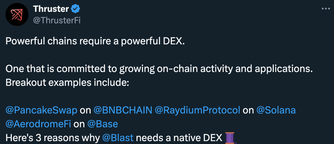 Without a native DEX, things can go STALE fast. For Blast, having its own native DEX is a no-brainer.