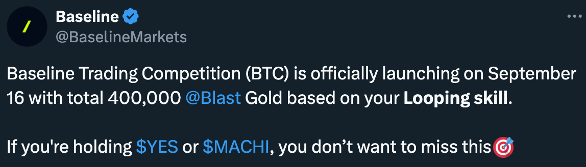 The Baseline Trading Competition is kicking off on September 16, and there’s a massive 400k Blast Gold prize pool up for grabs.