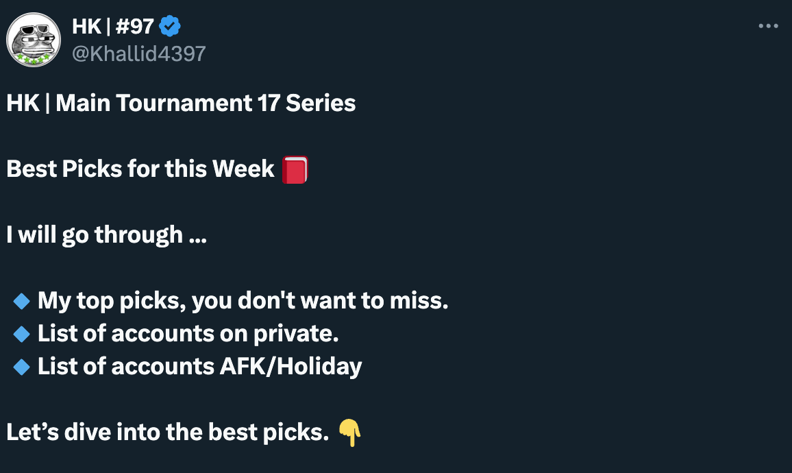9️⃣ Fantasy Top - Picks for Tournament 17 by Khallid