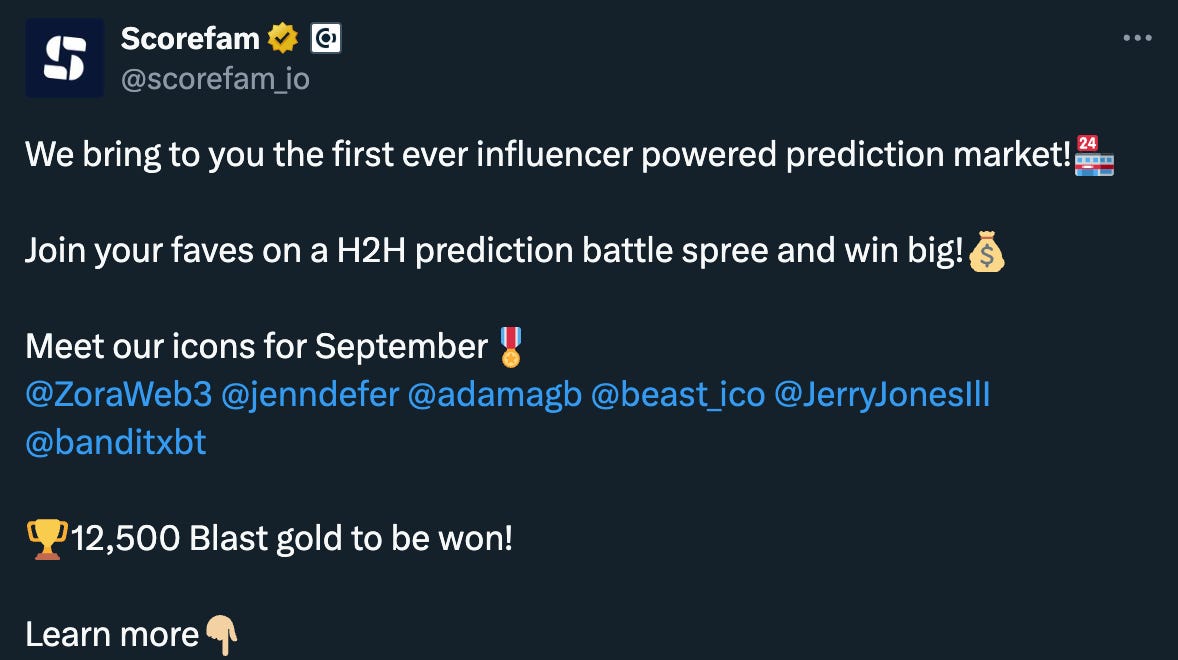 Scorefam is breaking new ground with an influencer-driven prediction market.