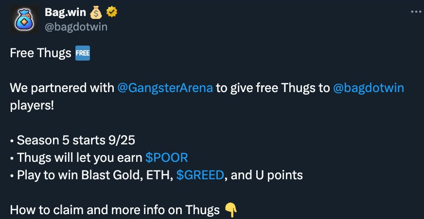 4️⃣ Gangster Arena x Bagdotwin: Free Thugs Giveaway