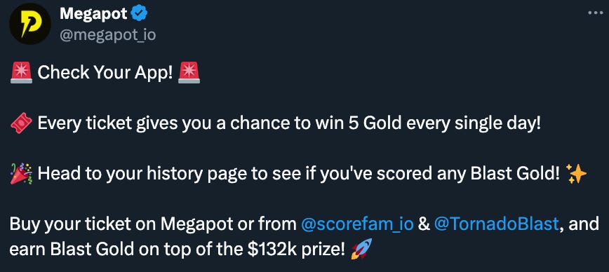 The Mega Pool Party (MPP) is about to launch as Blast’s first lottery pool, and it’s powered by MegaPot’s lottery-as-a-service protocol. It’s all about that massive $130,000+ $BLAST jackpot. LFG!